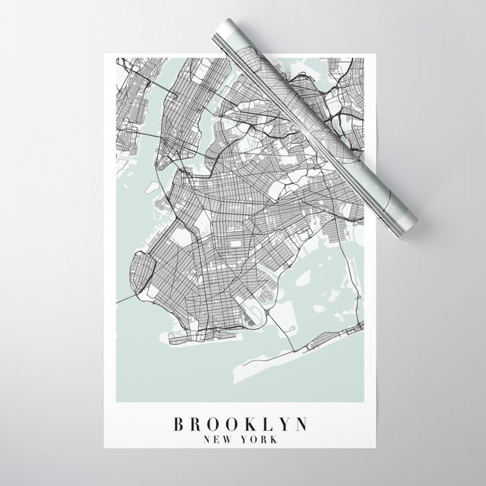 Brooklyn New York Blue Water Street Map Wrapping Paper by