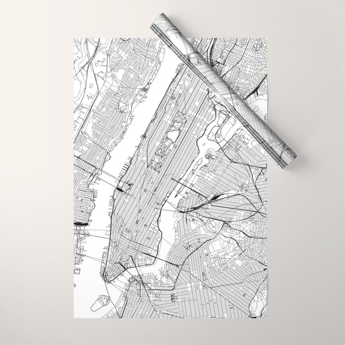 New York City White Map Wrapping Paper by multipliCITY | Society6