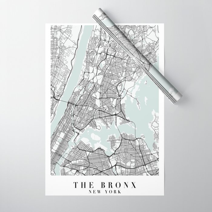 The Bronx New York Blue Water Street Map Wrapping Paper by