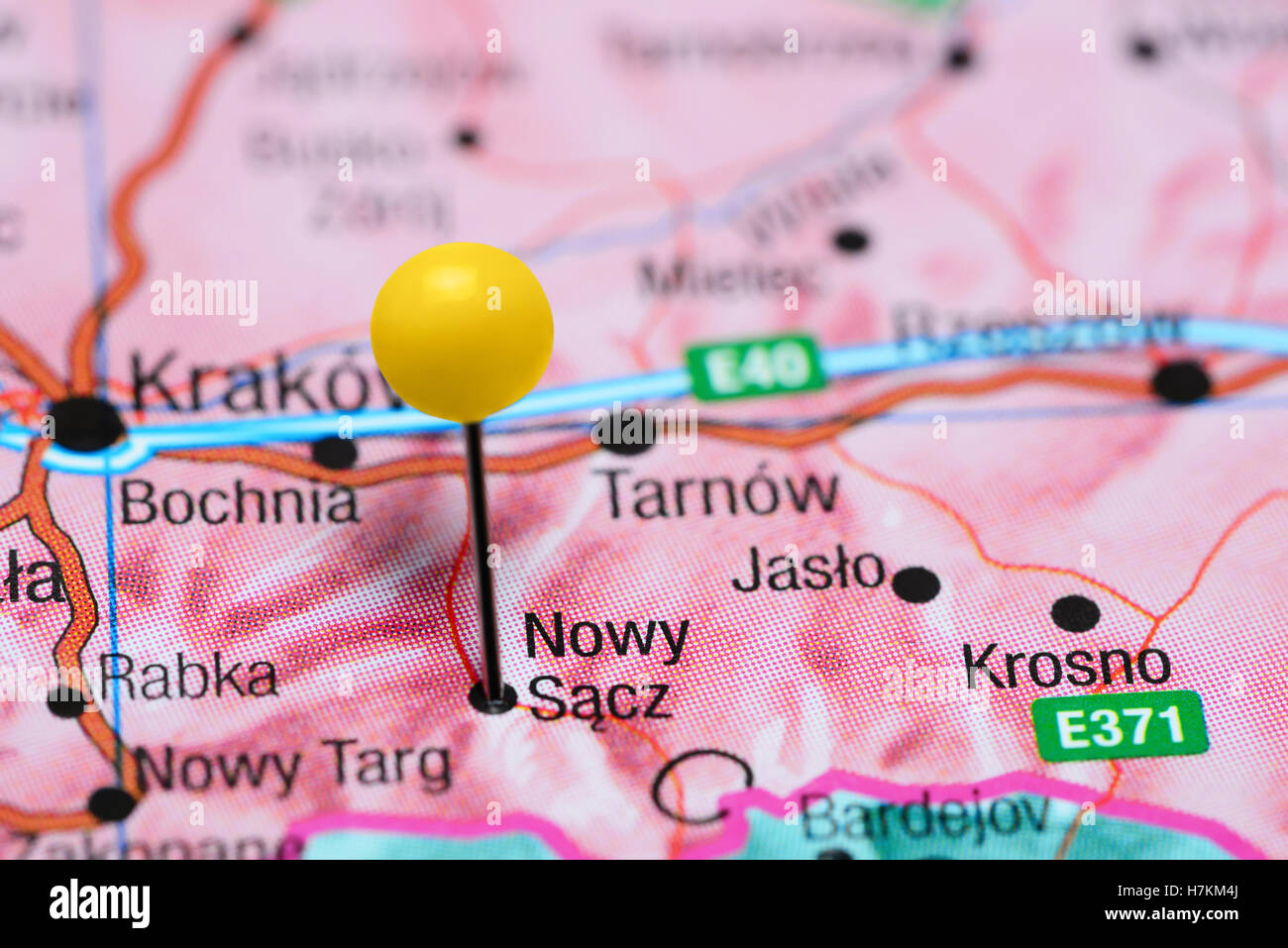 Nowy Sacz pinned on a map of Poland Stock Photo Alamy