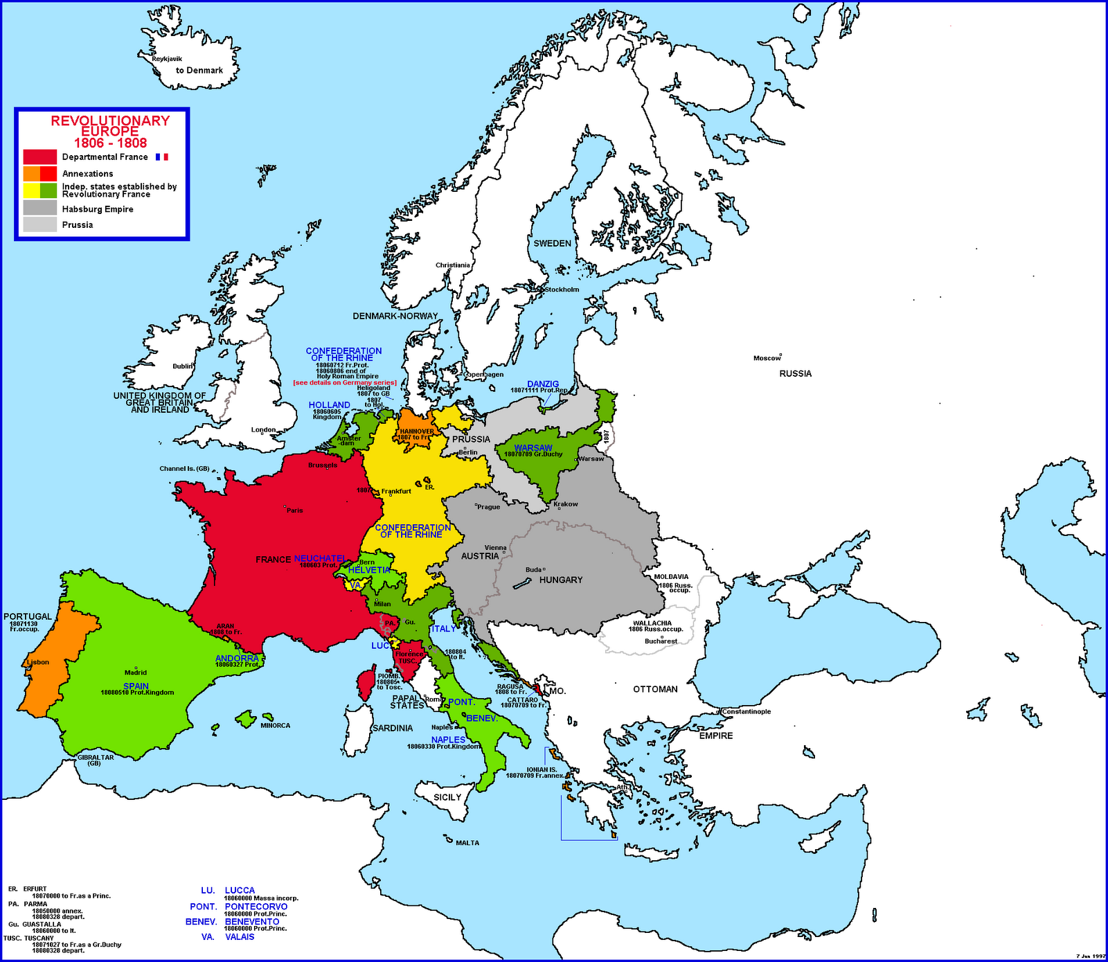 A simplified map of Europe after the Peace of Westphalia in 1648