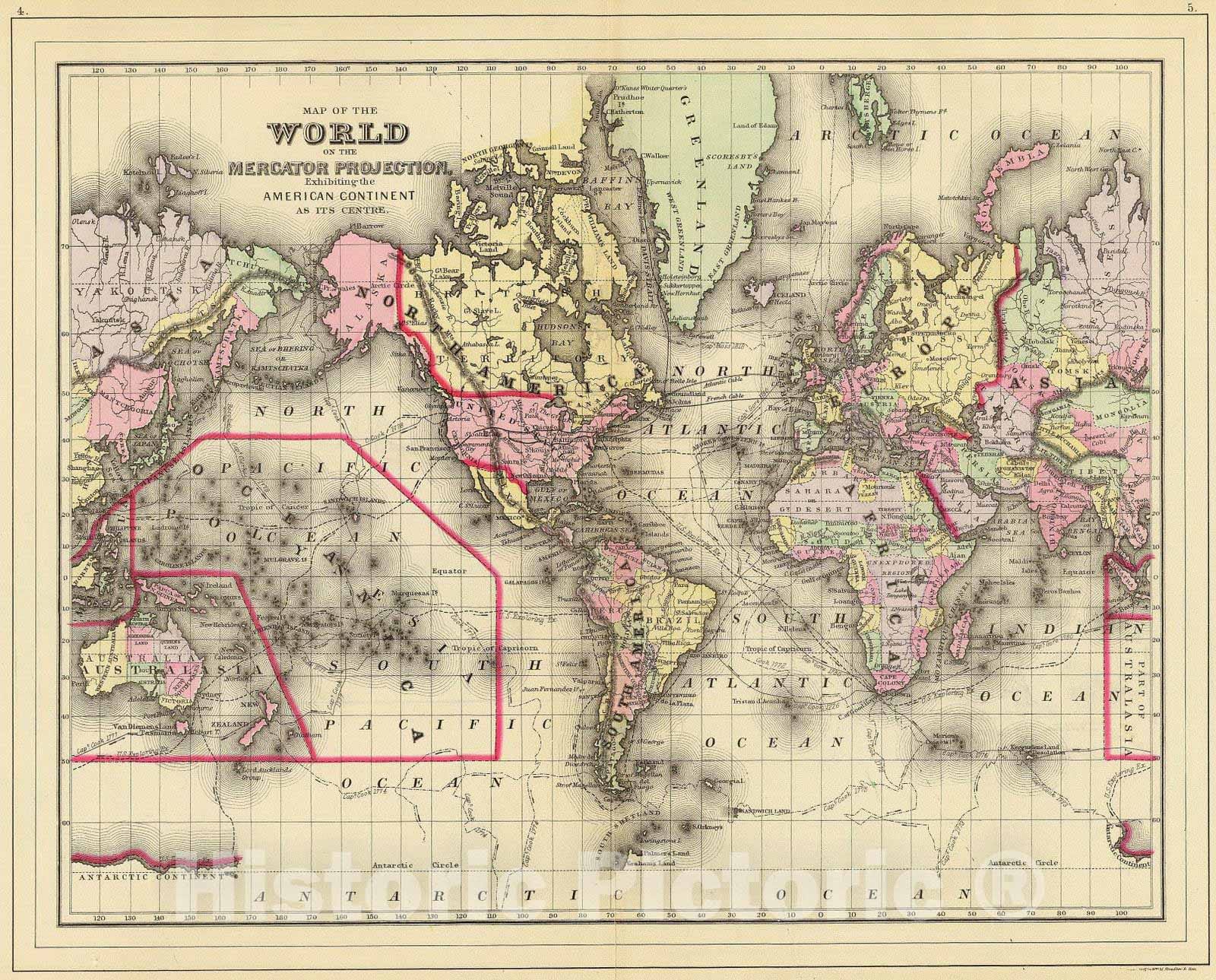 Historic Map 1890 World Mercator proj, Atlas Vintage Wall Art